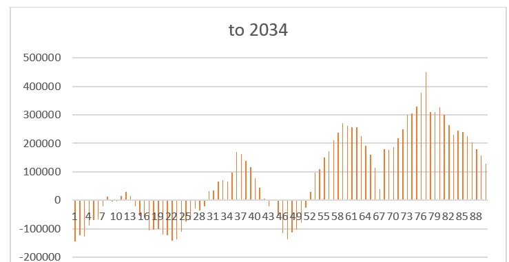 You might buy a machine with a quoted COP of say 3.75 but while making domestic hot water on a cold night it will be working at less than 2. There are benign swings however and given a sunny winter day with some warm air to chew on an ASHP can see COPs almost up to 5. You can see this on the dark blue line on the graph. Delivering 35c water to the underfloor heating the COP goes over 5 as the outside air goes over 10c. Note that the pale blue line (delivery temperature 50c for radiators) still only goes to around 3 so for most of the time the average COP will only be near 2.5. So, heat pump with radiators – think carefully.