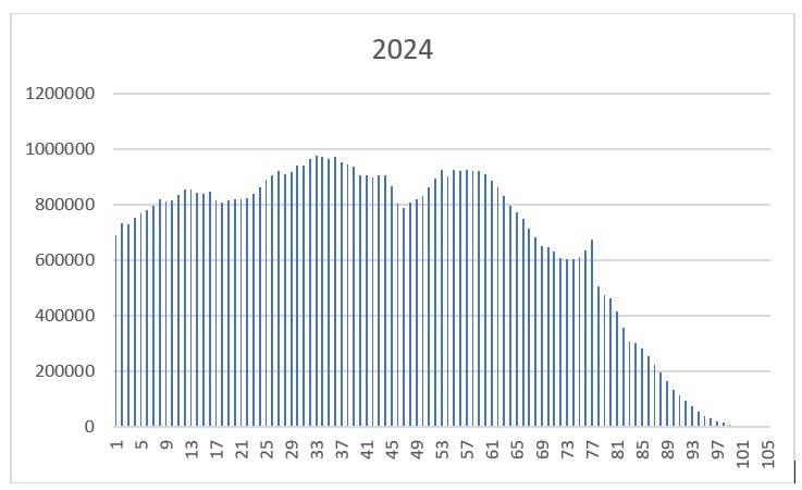 To winkle out some ideas we’ll take daily temperature data for January in Guildford (http://www.wunderground.com/) and relate that to a COP matrix made from the published data from a modern ASHP (inverter drive scroll, r410a, delivering to under floor heating at 35 degrees).