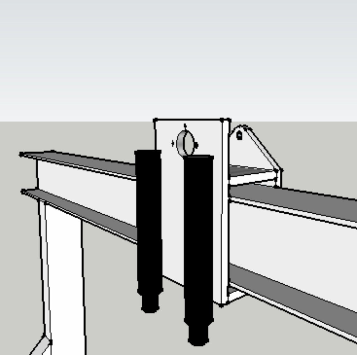 The other side plate supports a swinging plate that holds a pair of angled router motors. These are alternately selected with a push from an air cylinder; the cheapest alternative to a tool changer you’ll ever see.