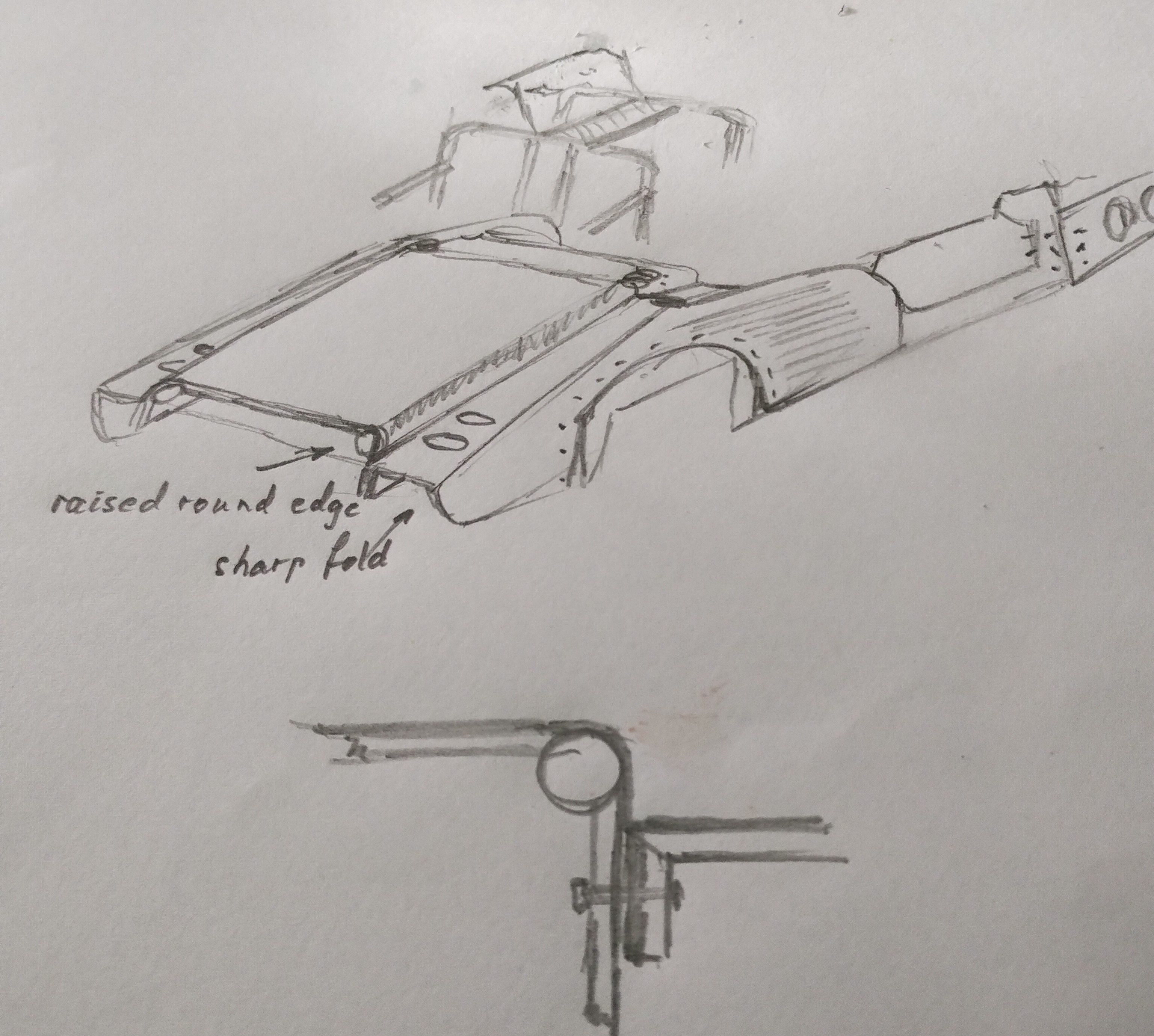 The fold-round-a-tube concept could be significantly extended. If that tube was part of the steel tubular sub-structure then the added strength of the panels would be significant. For example; the roll bar supports in the rear section would make immensely rigid supports to the rear subframe.