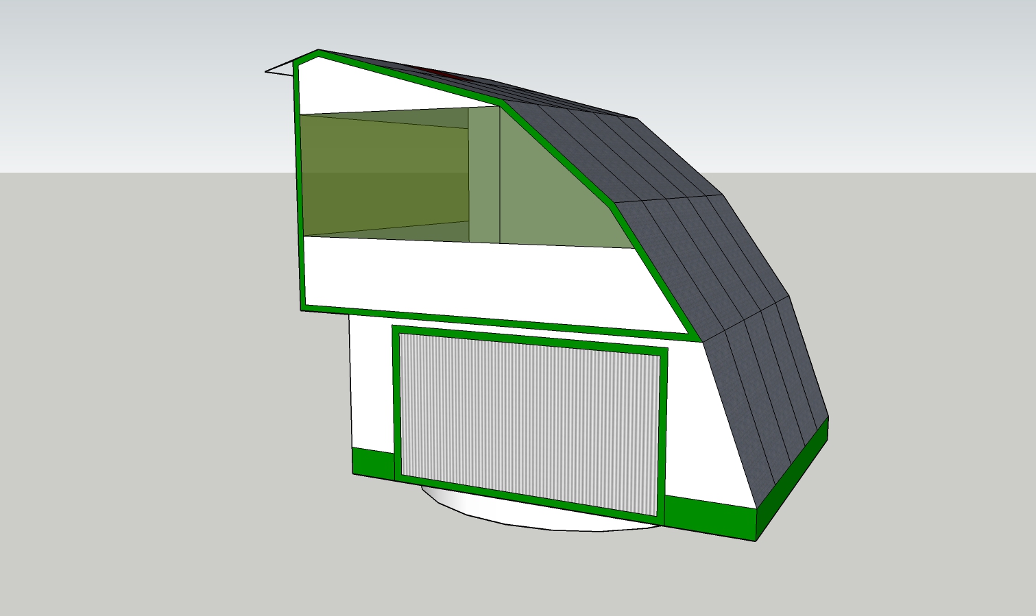A garage with enough PV power to charge your car and some for the house too. It rotates to track the sun and there is a room above for an office or a living pod. It will also turn your car round for you so saves space on the driveway.